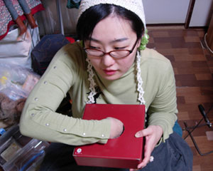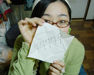インターネットショップという、 デジタルな店舗なのに、 なんてアナログな抽選方法…(^-^;) 応募いただいたアクセス数値を 折り紙に書いて、この箱に入れますっ♪ |