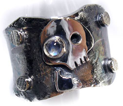 石 石をお付けしますか? 1:あり・なし 2:石の種類 在庫石は<<<こちら>>> 違う石もご用意できる場合もございます。 仕入れの場合は、仕入れの際にかかりました送料・差額等、実費をお願いたします。 3:付ける場所(右目・左目等・・) 石をご希望の場合は、「枠留め」または「わしづかみ」「接着」からお選びいただいております。 4:付け方 「枠留め」「わしずかみ」または、「接着」をお選びいただけます。 「枠留め」 ![]() ↑画像のようにしっかりと枠で留めます。 「シルバー」または「22金」からお選びいただけます。 (22金は時価となります。) 「枠留め」石の付ける位置は、 ![]() 基本的には↑画像の4箇所「くい(杭)」のような飾りの場所にお付けしますが、 この他ご希望の位置でもお付けできる場合もございますので、ご相談ください。 「わしづかみ」 ![]() ドクロくんが石をわしづかみしている様子からこの名前がつきました。 こちらは、石を接着で止めています。 こちらの留め方での在庫石は少ないため、ご注文の際在庫を確認させていただきます。 お取り寄せができる場合もございますので、ご相談ください。 ▼現在の「わしづかみ」在庫石はこちら▼