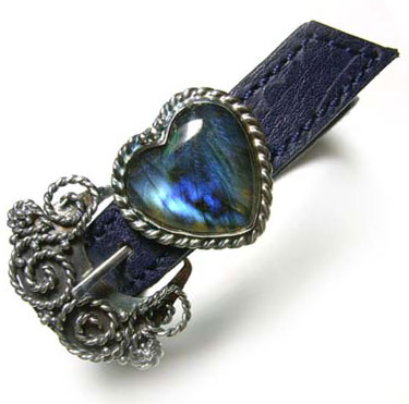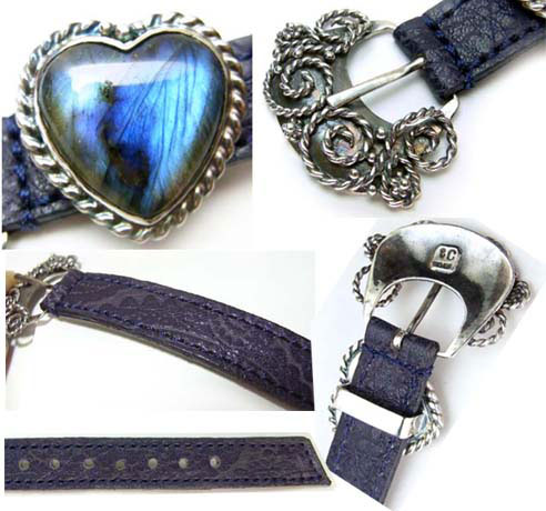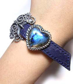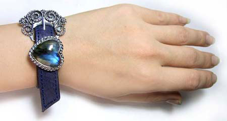 <ラブラドライト> 華やかなバックルをお供に、レザーバングルを作りました。