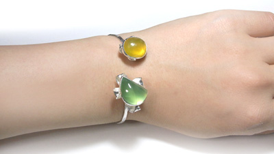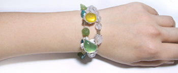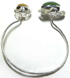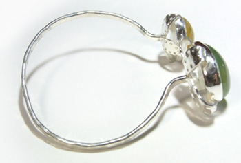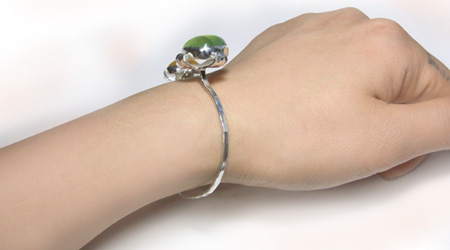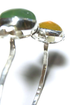 | 2粒のお石で・・・シンプルかつ、立体感のあるバングルを作りました♪ プレナイト&オパール・・・すがすがしいお色の組み合わせ、 草花のにょきにょきと生える姿をイメージしました。 お手持ちのブレスとの重ねづけで、ボリュームUPのコーディネートもお勧めです! |
