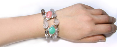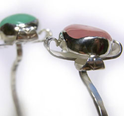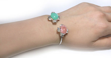 | 2粒のお石で・・・シンプルかつ、立体感のあるバングルを作りました♪ アマゾナイトとピンクオパール・・・やわらかいベビーカラーの組み合わせ・・・ 草、花のにょきにょきと生える姿をイメージしました。 お手持ちのブレスとの重ねづけで、ボリュームUPのコーディネートもお勧めです! |