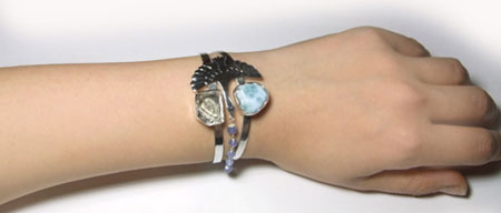 そんなイメージのバングルを ラリマー、ハーキマーダイヤモンド、タンザナイトのチカラをかりて制作しました。