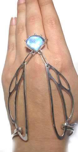 羽のモチーフとリングを合わせた 断然”個性派アクセサリー! 力強く羽ばたけそうな作品です。 <ラブラドライトついて> 不要なノイズからシールドし、直感力、洞察力をもたらすといわれています。