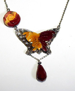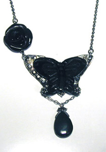 ***ちょうちょとバラの石がポイントのネックレスです。*** 4ヶ所(TOP部分に3個アジャスターに1個) についている石の色を統一したので 華やかですが、使いやすいと思います。 ![]() *首にかけたイメージ。↑ *チェーンの長さは36cmですが、 バラ、ちょうちょの石の部分の長さがありますので、 通常40cmぐらいのネックレスをつける感じとだと 思っていただいて大丈夫だと思います。 アジャスターが、4cmと少し長めに付いていますので、 タートルなどの服の上からもつけることが出来ます。 色の合うチョーカーや、リボンなどと重ねづけしてもカワイイですよ。