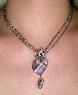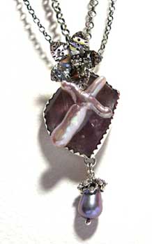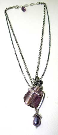 ●N_Neck03● SOLD OUT ![]() 透明感のあるアメジストの上に、クロスのパールを配した、 ロマンチックな色合いのネックレスです。