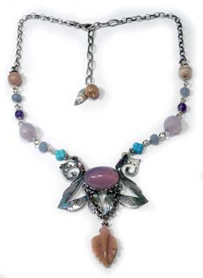 モチーフは少し妖しげなネックレスです。 *****カルセドニー***** この石について>未来に光を与えてくれる石。 もう一歩前に進む勇気が欲しい時や、 自信が持てず、迷いでいっぱいになってしまった時に マンネリを打破してくれるといわれています。