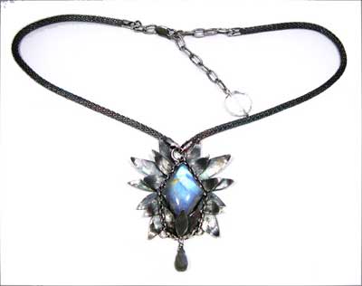 センターに大きめのラブラドライトをあしらいました。 繊細で、ちょっとゴージャスな雰囲気のする ネックレスです。 <この石について> ***ラブラドライト*** この石について>(不要なノイズからシールドし、 直感力、洞察力をもたらすといわれています)