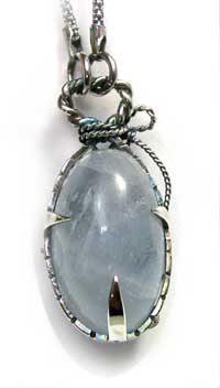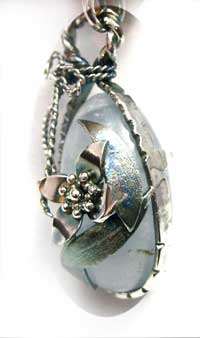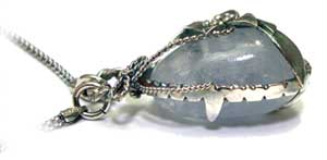 お花と葉っぱのモチーフで くるんだようなネックレスです。 この石について> ***セレスタイト*** 天青石 (Celestite)マダガスカル産 清浄、博愛、魂の浄化を表す鉱物とされています。 ストレスを軽減して心に平安と安定をもたらし あらゆるもののバランスを調整する力があり、 創造力や表現力を養い、より高次な意識へと導く石といわれています。 「トランキライザーストーン:精神安定剤石」ともいわれています。 硬度の低い石ですので、ぶつけたりなどご注意ください。 水道水の薬が石に影響を与えるとのことで、長時間(1時間とか、2時間とか) 水につけっぱなしにしないでください。(石屋さん談)