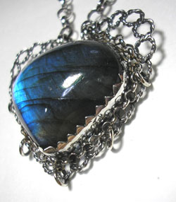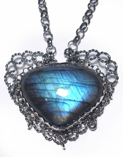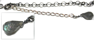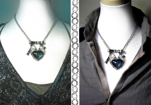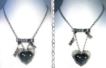 いろいろな使い方を楽しんでいただけます♪ ラブラドライトのネックレスのチェーンを、 リボンの左右の輪に通してお使いいただきます。 この石について ***ラブラドライト*** 不要なノイズからシールドし、直感力、洞察力をもたらすといわれています