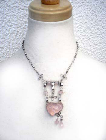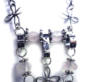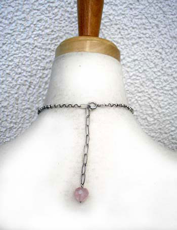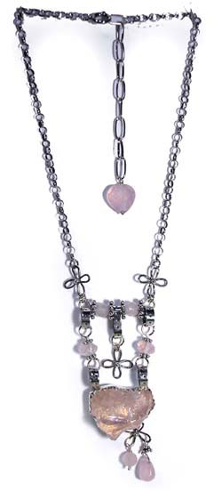キュートに、ちょっとハードに! ネックレスにしました♪ シャランラン♪ <この石について> ***ローズクオーツ*** 慈愛・優しさ・和やかさを象徴し、持つ人を柔らかな波動で包み、 感情面での安定を促して、若さと健康を保つ力があるといわれており、 心身のバランスを保って不安や恐怖から解き放つとも伝えられています。