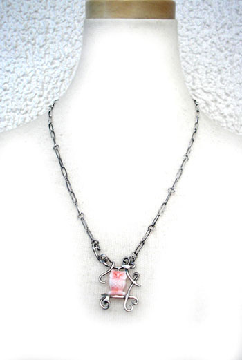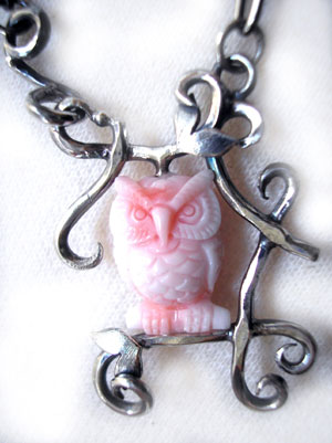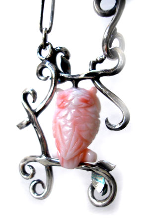 生かしたいと、作ったネックレスです。 色も、表情もとってもかわいいふくろうさんが、 さりげなく・・・枝にとまっています。 幸を呼んでくれそうです♪ (1点物です!) <この石について> ***珊瑚*** 「沈着」「聡明」「勇敢」 神経をリラックスさせ、潜在能力を引き出してくれる、 頭の働きをよくする、悪運を遠ざけると言われています。 ***ふくろう*** 目に見えない自然界の問題を英知と不思議な力で解きほぐし、 人々を守ってくれると信じられており、 古代ギリシャでは知恵の女神として、中国では悪魔を払い除ける鳥と崇められ、 学問や叡智のシンボルです。 大きな愛くるしい目は世界中の人々から愛されています。 ふくろうは『不苦労』『福来る』と言われ、 また首が180度回ることから、見通しがきき(先見力)商売繁栄にもつながる 縁起が良い鳥とされています。