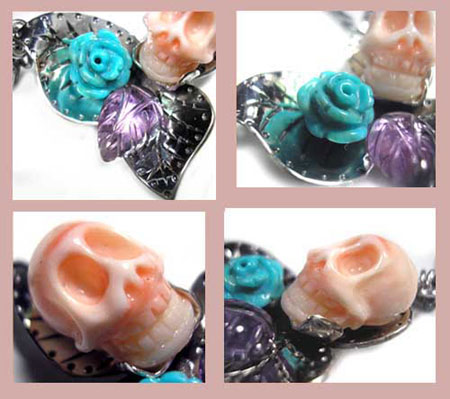 <トルコ石> ターコイズは旅人の石と言われ、持ち主に災いが及ぶと身代わりになるといわれています。 インディアンの間では最高の魔除とされています。 o(`_')○えいやー ***珊瑚*** 「沈着」「聡明」「勇敢」 神経をリラックスさせ、潜在能力を引き出してくれる、 頭の働きをよくする、悪運を遠ざけると言われています。 ***アメジスト*** 気品に満ちた高貴な輝きを放つ紫の石アメジストは 「愛と真実と情熱と受難と希望」を表す石といわれ、 心に不安を抱える人には慈悲と癒しのパワーで心の傷を取り除き、 安らぎを与えてくれます。 また、感情をコントロールし真実の愛を与えてくれます。 紫の美しい色に包まれる様子をイメージすれば、自信と勇気が湧き上がり、 ワンランク上の自分へと導いてくれるかも!