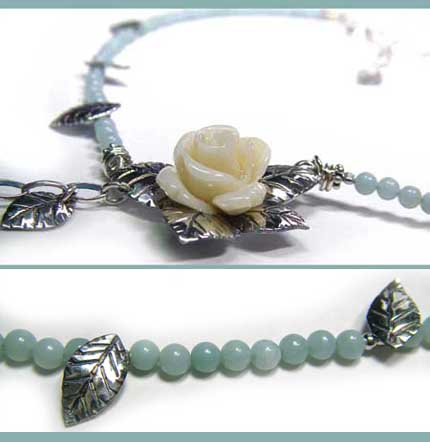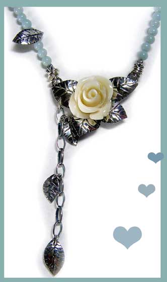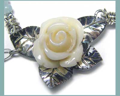 とっても立体感のある、天然色の白珊瑚のカービング(彫り)ローズをメインに!