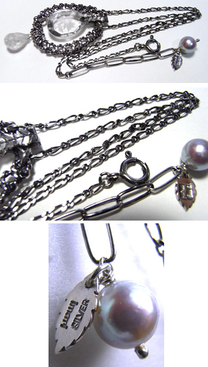 インタリオクォーツの周りを囲むより線(2本の銀の棒をねじって作るんです!)のモチーフには バラのツルのイメージで・・・チェーンを絡ませて・・・ さらに層の厚い繊細さを表現しました。