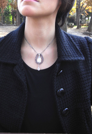 インタリオクォーツを品よく、 モノトーンで、少しアンティークに仕上げたネックレスです。