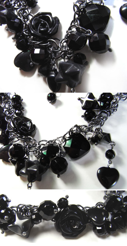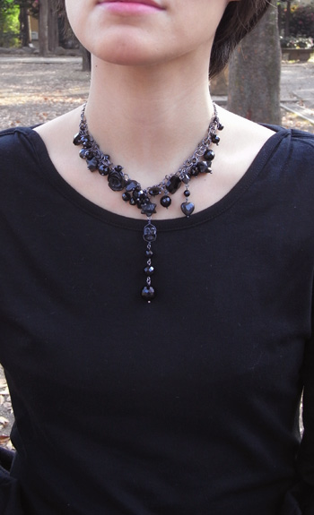 ブラックカラーの 何種類ものカットの異なる40石を ブラックにいぶしたシルバーと絡ませたネックレスです。 石は・・・