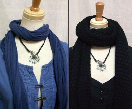 首周りは、レザーを縄あみし、大人っぽく、個性的なネックレスです。