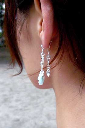 裏から留めるキャッチにもチェーンとモチーフを下げ