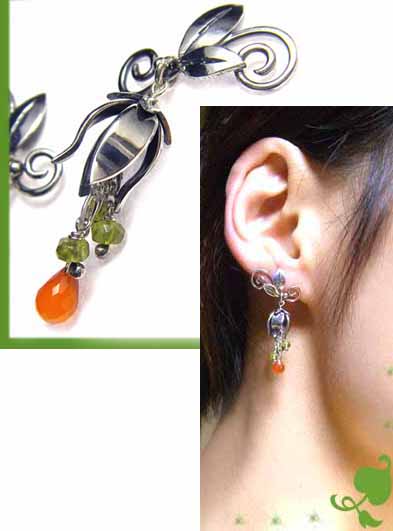 ツルと葉のモチーフは、耳に沿うように仕上げる事が出来ました。