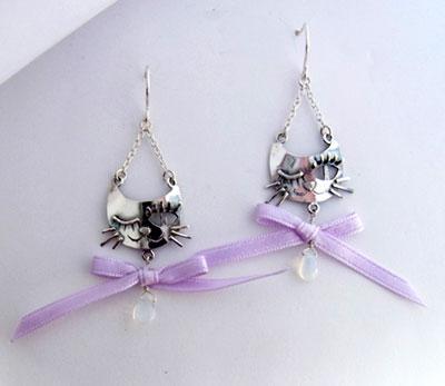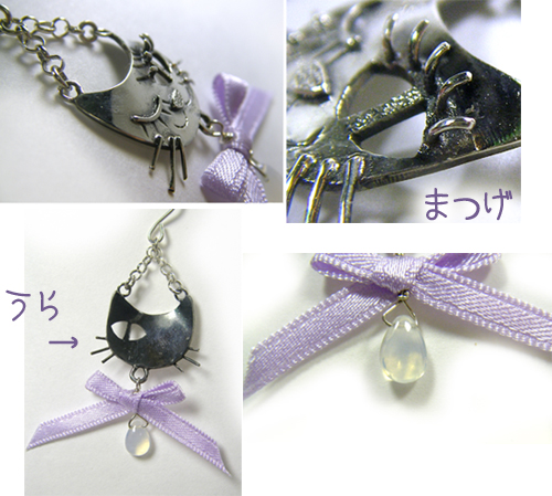 | ☆ご好評につき追加制作しました☆ チェーンのみ変更となりました。 存在感あり♪キュートなネコちゃんが微笑むピアスを、 まつげ、1本1本!とっても繊細に作りました。 ちょっと気になるお顔の裏・・・ 後ろ見はどうなのかしら〜?っとご心配の方! Up画像もご覧くださいませ! 裏は、まるでシルエットのように、お目目がはっきり見えて楽しくできました。^^ 下がるのは、ライトパープルのおリボンと、オパールです。 イヤリング、または他のピアス金具に変更ができます!詳しくは>>こちら お顔だけ、リボンなし・リボン色変更(ページ1番下にサンプル画像あります) などオーダーメイドも承ります! 1点ずつ手作りですので、若干お顔が違うことを何卒ご了承くださいませ! ▼▼▼こちらが再制作した現品の画像です。▼▼▼ |