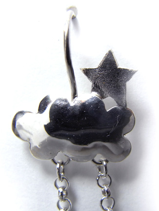 | 前々から、むくむくと考えてた<<アンブレラモチーフ>> やっとできました〜〜〜♪ ちょっと、だるいな〜・・・って気分になりがちな「雨の日を楽しく」すごせますように! の 気持ちで作りました。^^ でも・・・・ <傘>のずっと上には、<雲>があって、その上には。。。 きらりと輝いてるだろう<<お星さま>>がいてくれることを忘れたくないですね♪ 傘も雲も平らじゃなくて、ちょっとふっくらとやわらかい風合いにできました。 いや〜な雨じゃなくて、きらりと輝く雨粒(カットのきれいなブルートパーズです) 恵みの雨だと思えたらいいな〜。 |