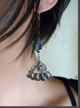 | 上質で、お色のいいロンドンブルートパーズを見つめていたら・・・ 湧いてきた・・・ 扇のようでもあり・・・レースやドレープのような・・・ちょっとセクシー?(妄想?)なデザインの ピアスが完成しました。^o^* 現状は金具から下約7cmです。オニキスの数を増やしたり、減らしたりで お好みの長さに変更承ります。(加工代をお願いする場合もございます) イヤリング(差額のみお願いいたします。)や、キャッチピアスへの変更もうけたまわります。 ご相談ください。 |