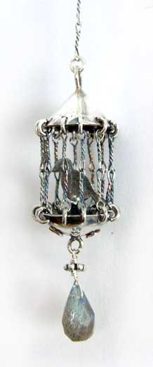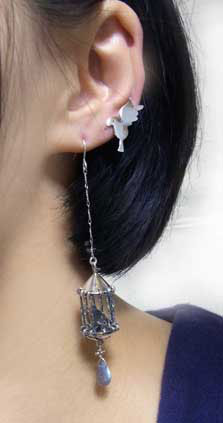 | 「籠の鳥」はいつか飛び立つ?そんなことをイメージして作りました。 〜〜〜〜〜〜〜〜〜〜〜〜〜〜〜〜〜〜〜〜 「籠」をイメージした作品です。 ★片方は・・・繊細なつくりの籠の中に止まり木に止まった鳥さん。 下がった涙型の石は、シルバーになじみのいい「ラブラドライト」を飾りました。 (他の石に変更も出来ます。ご相談ください) ★もう片方は・・・いつか「飛び立っていく鳥さん」のモチーフをセットにしました。 ・イヤリングへの変更承りますので、ご相談ください。 ・チェーン部分の長さ変更承ります。 ・こちらの作品の価格は現品のみの価格になります。 |