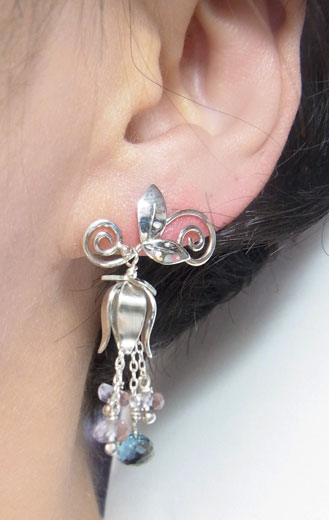 ツルと葉のモチーフは、耳に沿うようになっております。