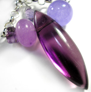 つやのいいシャープなフローライトを ちょっとミルキーなパープル系の石ではさみました。