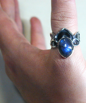●N_Ring01● SOLD OUT ![]() ご好評いただいているハードなイメージのリングです。 後ろまでしっかりと、模様が入っています。 つけ方で雰囲気がとても変わりますので、 お好きなつけ方を見つけて楽しんでください。 デニムはもちろん、黒などのエレガントな服装にもオススメです。 ***きれいな青がはっきり出たラブラドライトを配しました*** この石について>(不要なノイズからシールドし、 直感力、洞察力をもたらすといわれています)