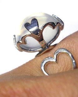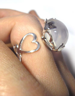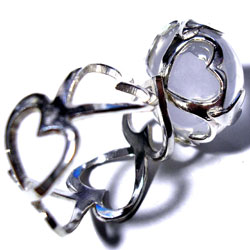 ハートモチーフいっぱいリングに! でも、甘すぎない雰囲気です! 少し、隣の指に石がかかるデザインで、 土台のハートモチーフが上からもしっかり見えます。 ***ムーンストーン*** 直感力を高め、感受性を豊かにすると伝えられます。 また、恋人達の石と呼ばれ、希望と愛を育み幸福をもたらすと言われています。