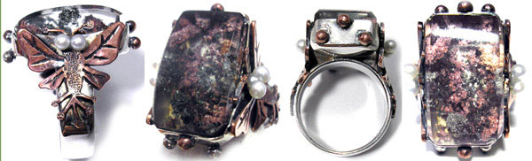 ●N_Ring114● SOLD OUTありがとうございます! ![]() 水中を覗き込んだようなガーデンクォーツを ちょっと変わったブロンズの昆虫が支えた、 個性的なリングです。 <この石について> 精神的なダメージや肉体的なダメージにパワーを発揮し、病魔を吸収すると言われています。 ヒーリング効果も高いと言われ、健康な方の魔除けにも。。。。