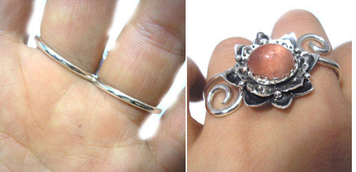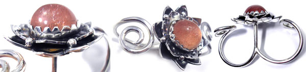 2枚重ねのちょっとハードなお花の W-Ring(2本の指につけるリング)にしました! ***ストロベリークォーツ*** 粘り強さと冒険心をもたらし、 ツキを運んでくれる勝利の女神が宿る石と言われています。 ******ダブルリングについて***** 薬指と中指にお着けいただくのがオススメです。 着け心地をご心配される方も多いのですが、 薬指、中指はあまり普段広げることがなく、 握る部分は太くないので、着け心地もとてもいいですよ。