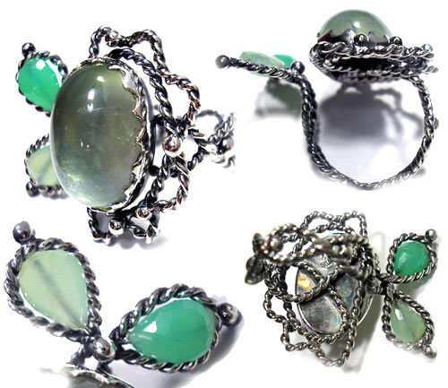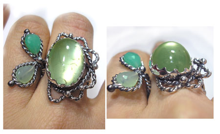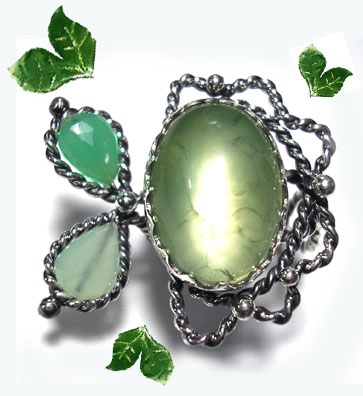 ●N_Ring119● 現品SOLD OUT 同等の在庫石、あとひとつございます。サイズオーダー承ります。 このページの一番下までご覧ください。 ![]() マスカットグリーンといわれる大きめプレナイトを 葉に見たてたクリソプレーズと合わせ、 さわやかでフェミニンなリングに仕上げました♪ <プレナイト> 頭脳の石といわれ判断力を高め、物事を正しく見極める 力を与えてくれます。 <クリソプレーズ> 怒りの感情を抑え、極度の緊張を和らげ、 希望を持たせて能力を引き出すと言われています。