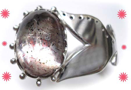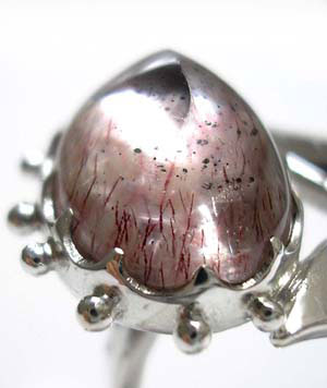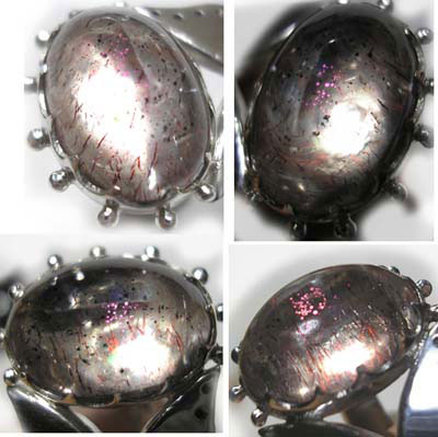 <ピンクファイヤークォーツ> (コベライトインクォーツ) 近年出てきた新種の石で、 名前も現地での呼称で、確定された名前ではないかもしれません。 イリデッセンスがピンクの珍しいクォーツです 角度を変えたり、ライトを当てたりすることにより、 ラブラドレッセンスやキャッツアイ効果のように 動きのある、ピンクのきらきら★が見えます。