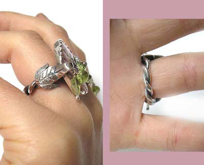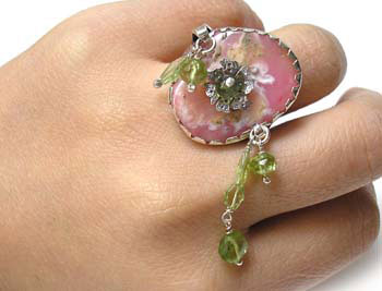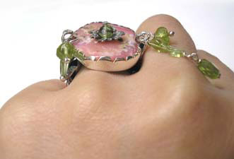 ピンクオパールに相性のいいお色のペリドットを ちりばめた、ラブリ〜カラーのリングです。 |
