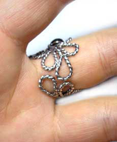 人差し指に着けると、模様がさらに際立つと思いますよ〜。 |