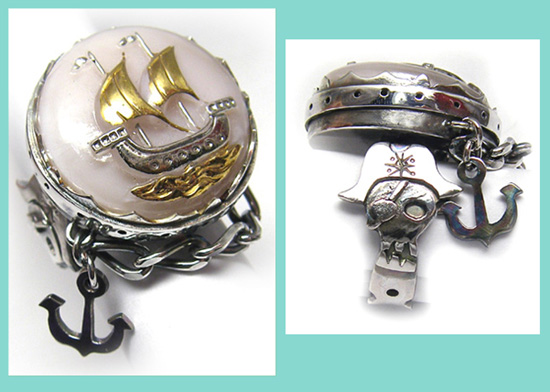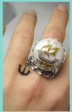 ●N_Ring156● SOLD OUT ![]() <チェコガラス>って、よく耳にしていたけど こんなに素敵だとは知りませんでした〜。 天然石に優るとも劣らず!の魅力です♪ そして、今回出会ったチェコガラスの1つが、このお船です。 模様が少し立体的になっています。 そして、この船の模様から、、、 imari的「パイレーツリング」ができました〜♪ *次回、材料入荷の予定は未定です。あるかはわかりませんm(_ _)m