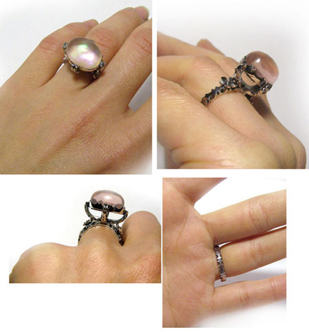 ●N_Ring160● 現品即決SOLD OUT! 別の形のローズクォーツあと2個あります。その他の石もオススメ1点。 このページの一番下までご覧ください。 ![]() お色も形もまろやかなローズクォーツの下に シェルを敷き、さらに素敵不思議な雰囲気に仕上げました。 *同等の石は現品のみです。 形違いのローズクォーツでのオーダーメイドが可能です。一番下までご覧くださいm(_ _)m