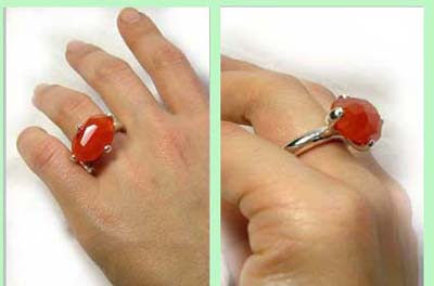 ●N_Ring162● SOLD OUT 色々な石でころっとリングお作りできます♪ オーダーメイドページは <<コチラ>> ![]() ご好評いただきました、「ころっとRing」シリーズです! (…って名付けてみました(^^ゞ)ころっとしたカットカーネリアンを シンプルでもボリュームのあるツメで仕上げたリングです♪ ***はっきりしたオレンジ系の朱色で、カットされたカーネリアンを配しました*** 仕事の成果を上げ、行動力や発言力を高め、 怒りや恐怖などの精神的ダメージを回復させ、勇気を与えるといわれています。