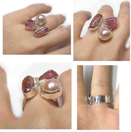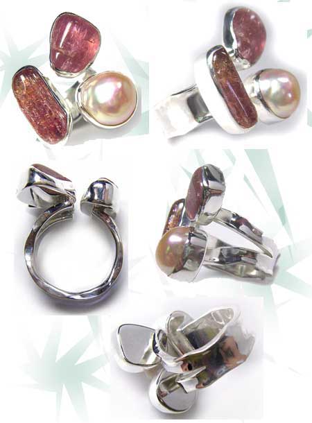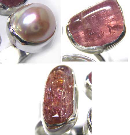 SOLD OUT ゴールデントパーズの原石・質のいいピンクパール 計3石をつかった、華やかで、やわらかい雰囲気のリングです。