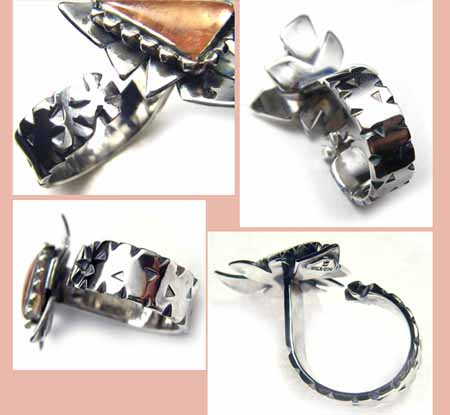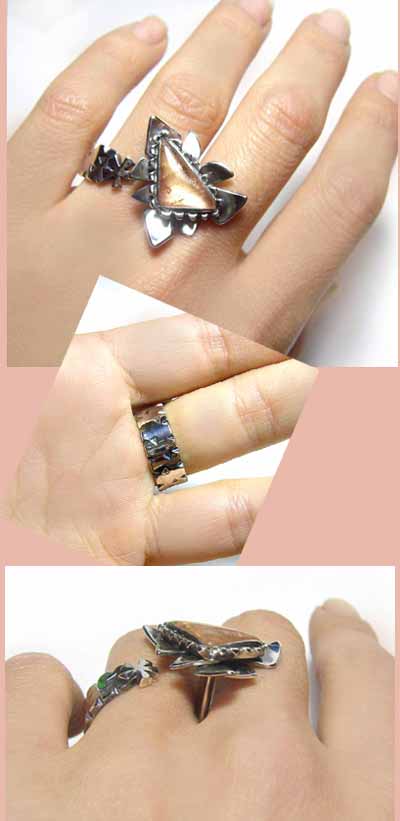 〜〜〜〜〜フリーサイズのデザインです。〜〜〜〜〜 石の周りのデザインにも力を入れました〜。 石とモチーフは、指と指の間につけ、動きのある雰囲気です。