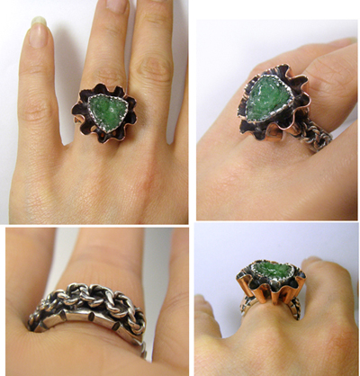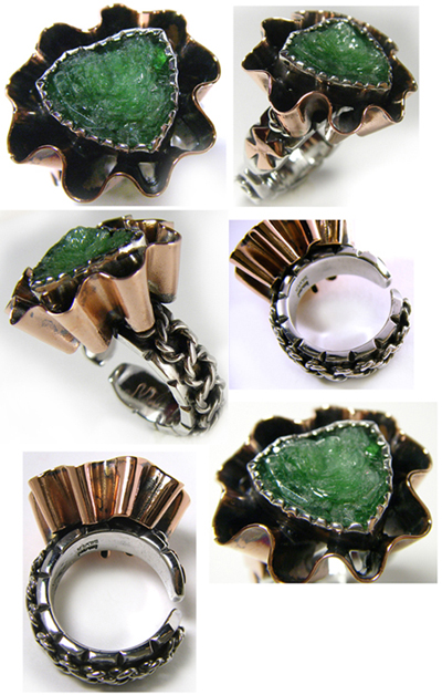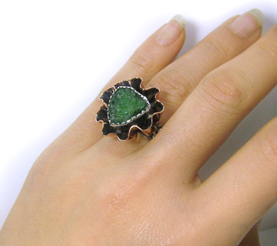 このドレープ感は、ブロンズでなければできないのでは?と思っています。 といいますのも・・・ブロンズは・・・なまし(火をかけてやわらかくしたとき・・・)という作業をすると シルバーよりずっとやわらかくなり、加工の自由度が高いんです! また、加工をしていくうちに、シルバーよりも、ずっと早く、硬くしまってくるので、 このドレープが容易につぶれてしまうこともありません。