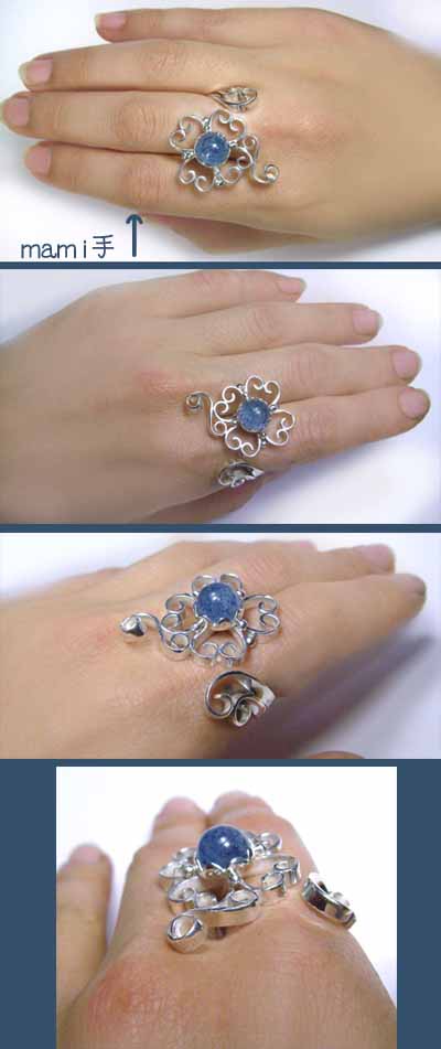 上質な、ブルークォーツを透け感のあるモチーフで飾りました。 くるくると、指にツルが絡まるようなイメージの 大人の品と、清涼感漂うリングです。
