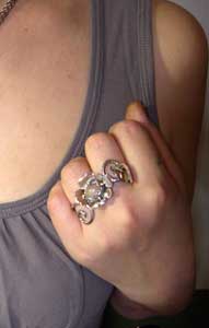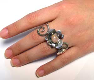 ●N_Ring20● ![]() お花と、はっぱのモチーフが、手にからみつくような、 2本の指につけるリングです。 この石について>(愛する本能を目覚めさせ癒しのパワーを得ることができる、 人の創造力も刺激し、内面の美を引き出す アーティストの石と言われています)
