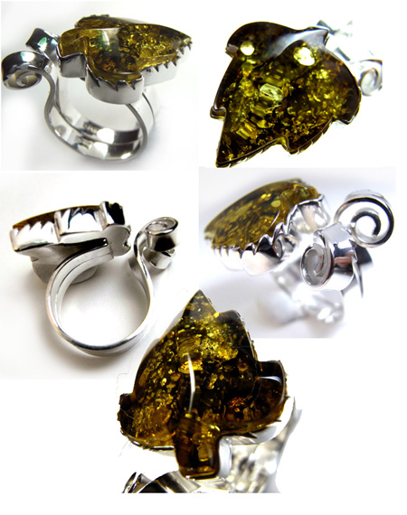 指に対して、琥珀の向きをナナメにつけることで、動きのあるデザインになりましたね〜。^^