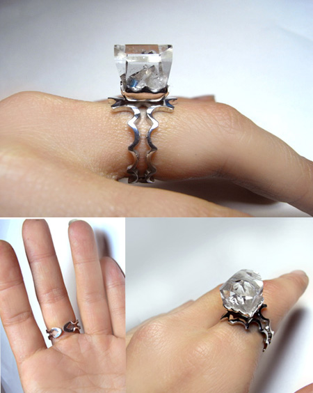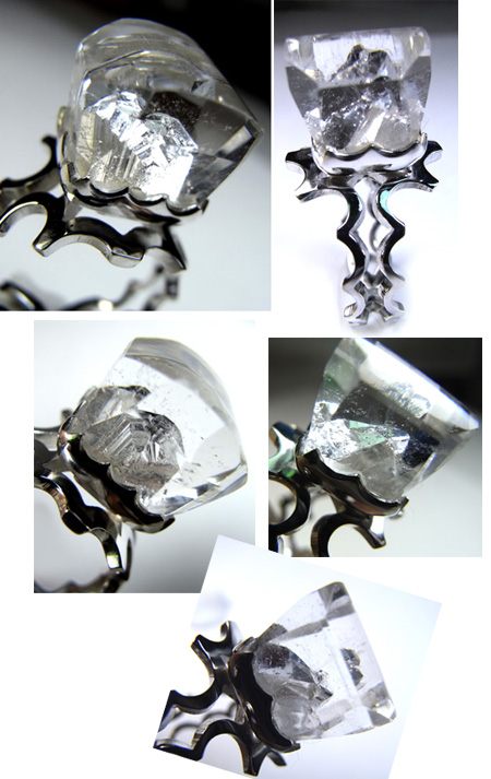 水晶の中に、きれいにまた別の水晶がくっきりと見える クォーツインクォーツを、王冠のラインをイメージしたデザインで・・・ 気分は貴族のリング〜〜♪^^? 外側の水晶がクリアで、内包された水晶が特にサイドからはっきりと見えます。