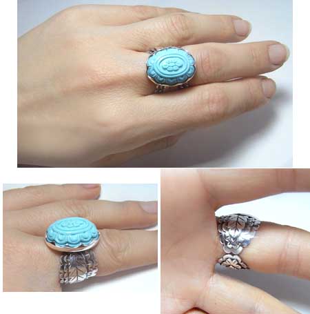 品のいいお色のカービング(彫刻)トルコ石を、