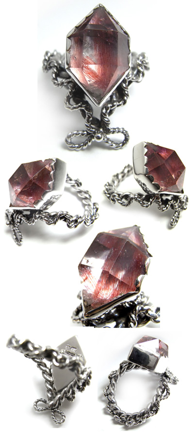 きれいな赤いインクルージョンの入った水晶をしっかりと枠で包み・・・ アンティーク感とちょっとセクシ〜!?な雰囲気ただよう