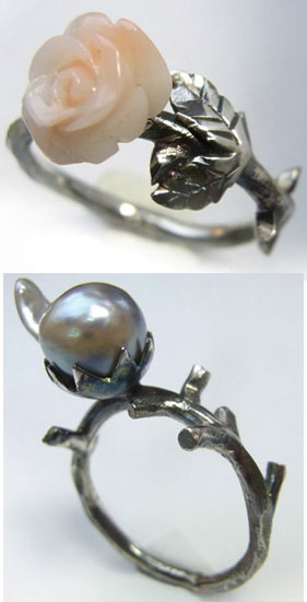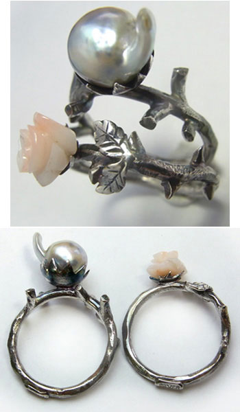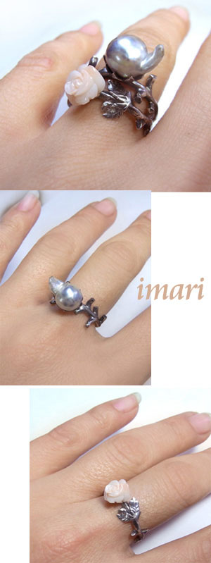 バロックパール と 清楚なベビーピンクの薔薇カービング